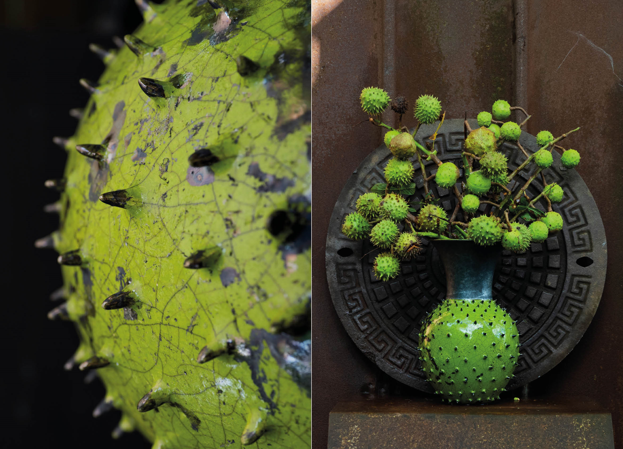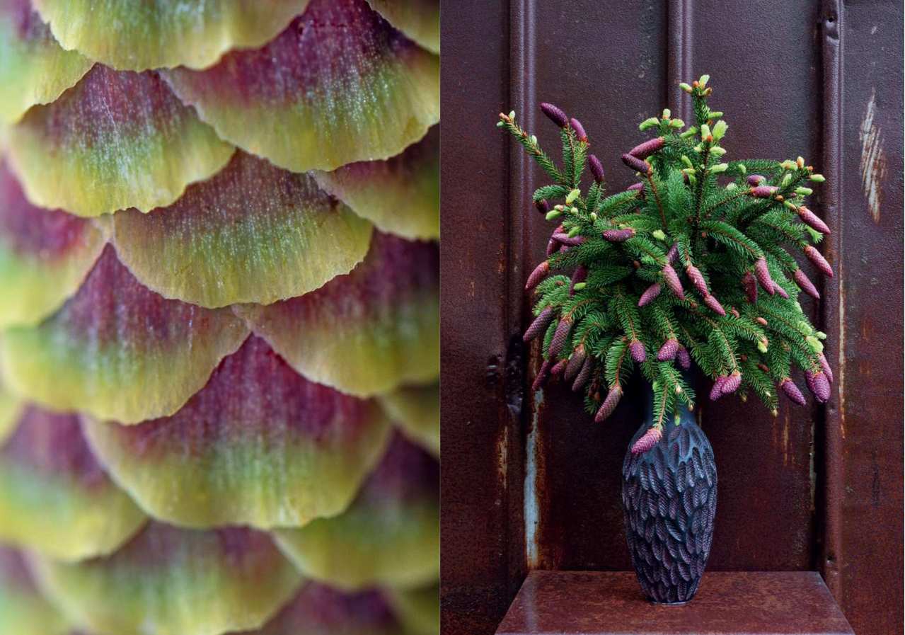 Især i de kolde måneder var det var en udfordring at finde egnede planter. Det har været inspirerende at lave vaser til lidt anderledes buketter af grene med mosser og lavarter. Og skønt i sommermånedernes frodighed at lave vaser til de forhadte og udstødte. Til ukrudtet og de invasive arter med deres vidunderlige grokraft og ukuelighed. Og til efterårets mange forskellige smukke bær og frugter.