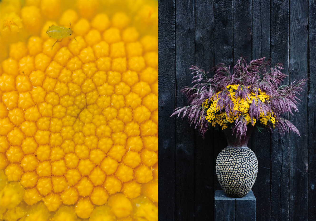 I min bog føres du gennem årstiderne i billeder af træer, buske, planter, knopper, blomster, frugter, bær, kogler, lav, mos, landskaber, vaser og buketter. Du kommer helt ind i plantestrukturer, vasemønstre og glasuroverflader og får indblik i hvordan naturen påvirker mit liv og virke.